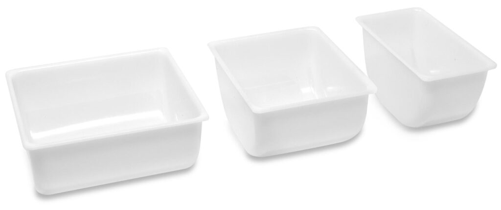 Our take on improving these was to make them 1 inch taller, so ice could be put below the inserts. That way, fruit and berries stay fresher for longer. The trays come in 3 different sizes.
